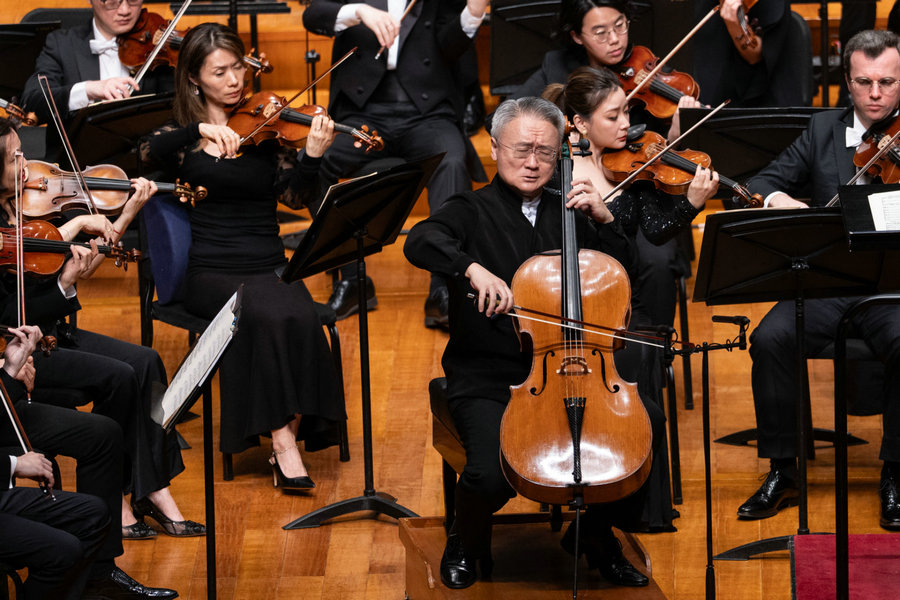 Cellist Wang Jian at the concert on May 18 at the NCPA. [Photo provided to China Daily]